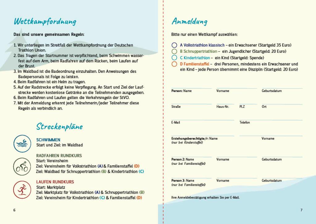 Eine Broschüre für einen Waldtriathlon